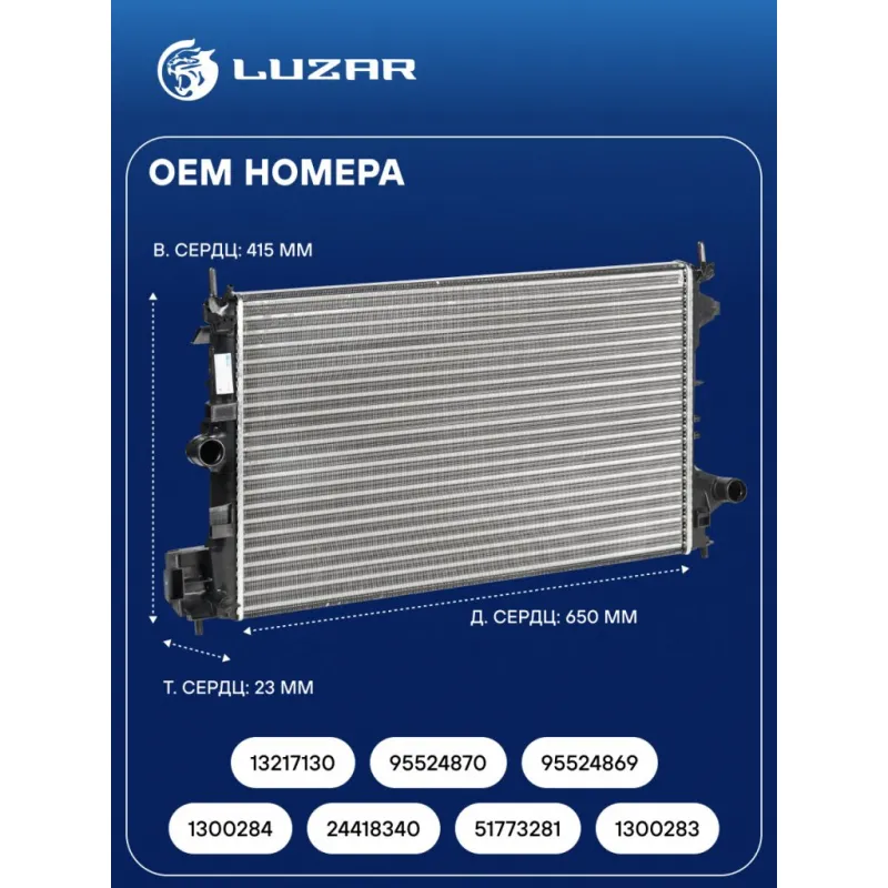 Радиатор охлаждения для автомобилей Vectra C (02-) MT 1.6i/1.8i рестайлинг LRc 2114 LUZAR