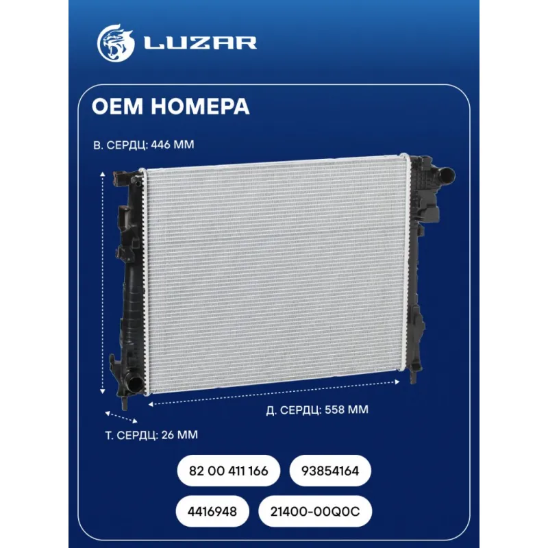Радиатор охлаждения для автомобилей Vivaro (01-) 2.0dTi LRc 2148 LUZAR