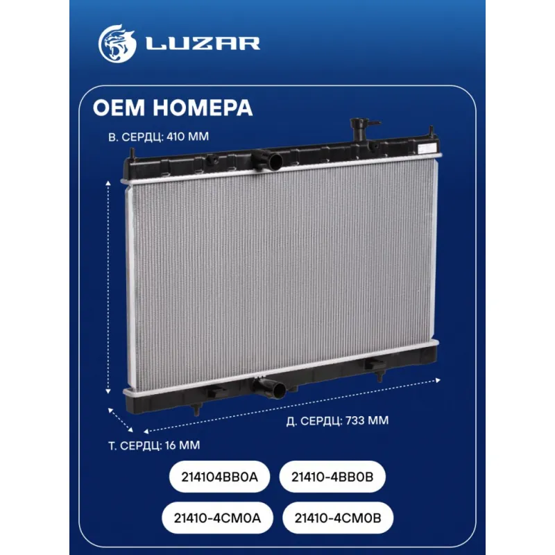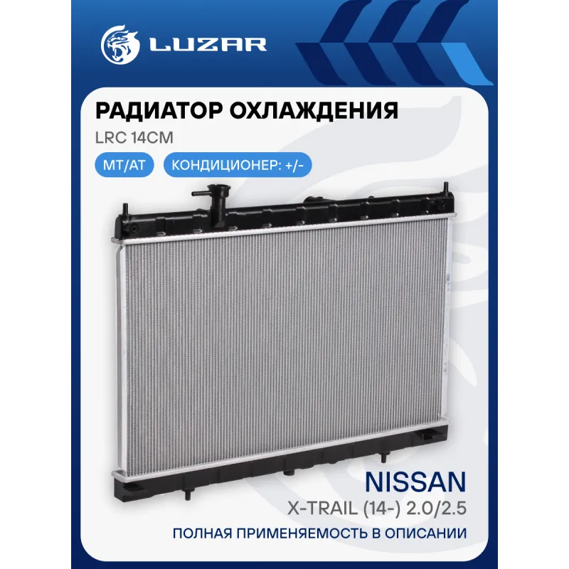 Радиатор охлаждения для автомобилей X-Trail (14-) 2.0/2.5 Характеристики: Артикул: LRc 14CM OEM номера: 21410-4CM0A, 21410-4CM0B, 214104BB0A, 21410-4BB0B Трансмиссия: MT/AT Кондиционер: +/- Длина сердцевины, мм: 733 Высота сердцевины, мм: 410 Толщина сердцевины, мм: 16 Сопутствующий товар: Электровентиляторы охлаждения: LFK 14CM Сопутствующий товар: Радиаторы кондиционера (конденсеры): LRAC 14CM Подходит для авто: Nissan X-Trail T32 (14-) Для проверки применяемости отправьте VIN автомобиля через вкладку "Есть вопросы о товаре?" Комплектация: Радиатор охлаждения Паспорт изделия Гарантия: от 1 года.