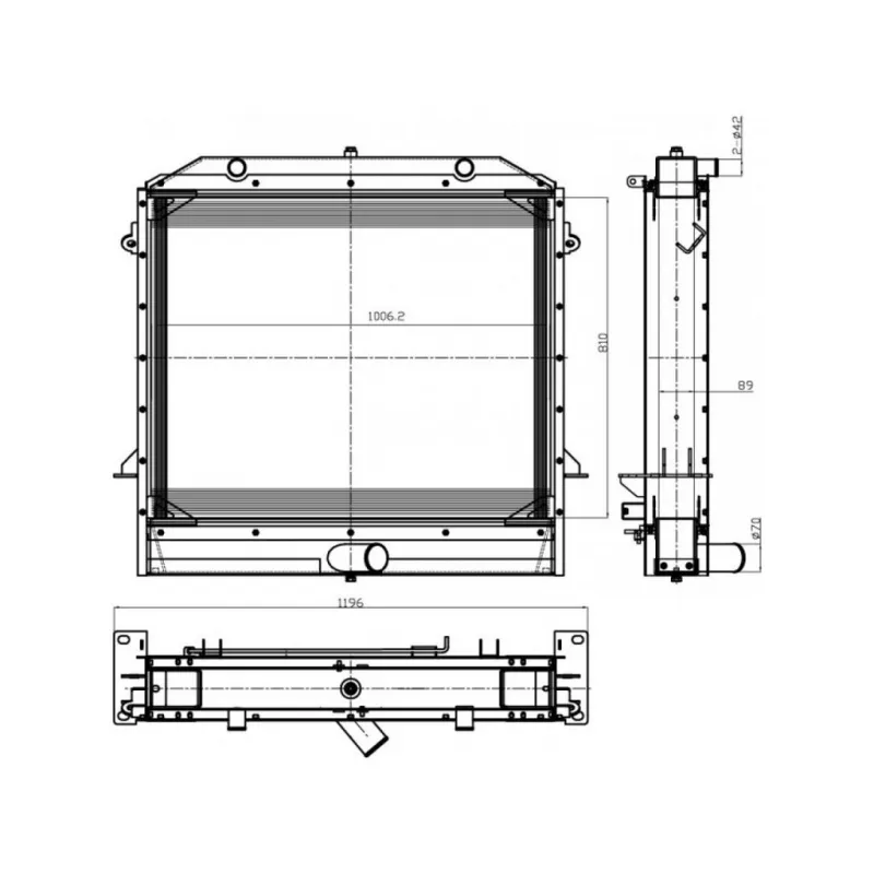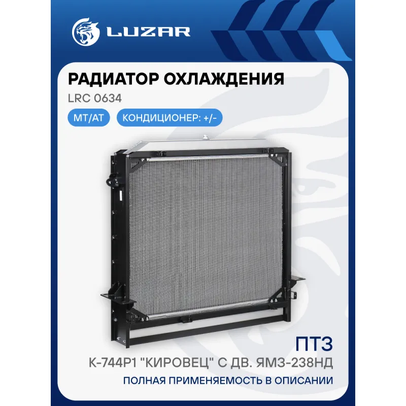 Радиатор охлаждения для тракторов К-744Р1 "Кировец" с дв. ЯМЗ-238НД (тип Композит) (с рамкой) Характеристики: Артикул: LRc 0634 OEM номера: Б744Р1К.1301.2000-01, Б744Р1К.1301.0000-01 Трансмиссия: MT/AT Кондиционер: +/- Длина сердцевины, мм: 1006,2 Высота сердцевины, мм: 810 Толщина сердцевины, мм: 89 Тип сердцевины: паяная, 4-х рядная Материал сердцевины: алюминий Материал бачков: алюминий Тип конструкции: с металлической рамкой Особенности конструкции:: ширина трубок сердцевины 22мм Диаметр патрубков: нижний-70мм, верхние-42мм Совместимость: входит в состав блока радиаторов Б744Р1К.1301.0000-01 в паре с блоком масляных радиаторов LOc 0604 Подходит для авто: ПТЗ К-744Р1 (02-) Для проверки применяемости отправьте VIN автомобиля через вкладку "Есть вопросы о товаре?" Комплектация: Радиатор охлаждения Паспорт изделия Гарантия: от 1 года.