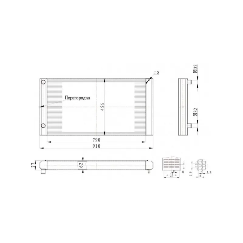 | Тип сердцевины | паяная, 3-х рядная |