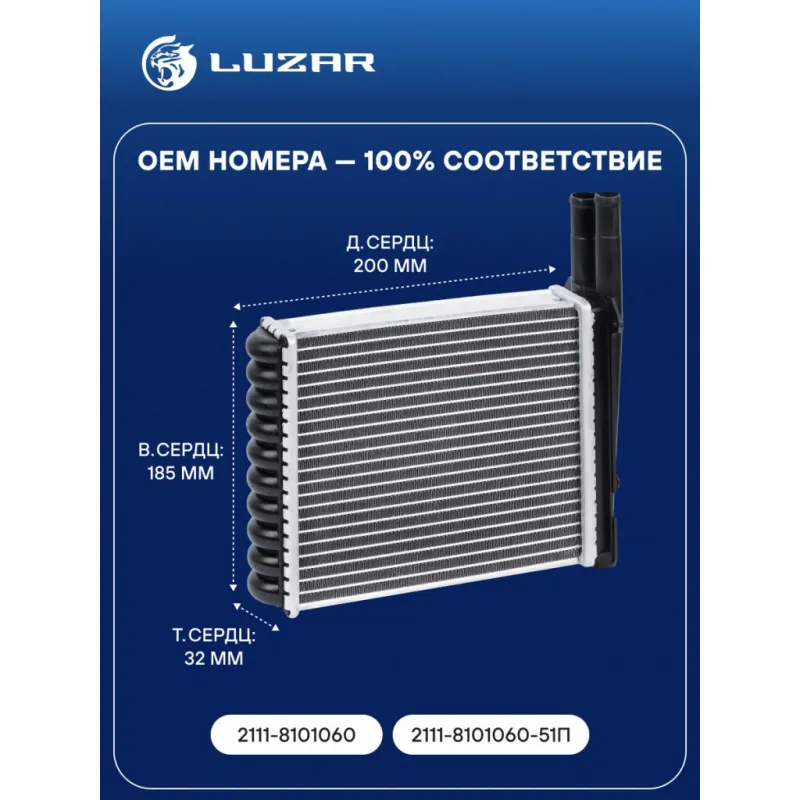 Радиатор отопителя для а/м 2110 (с 2003г.) (COMFORT, паяный) Характеристики: Артикул: LRh 0111b OEM номера: 2111-8101060, 2111-8101060-51П Материал бачков: пластик Тип сердцевины: паяная Сопутствующий товар: Электровентиляторы отопителя: LFh 01230; LFh 0113 Сопутствующий товар: Патрубки отопления (комплект): LPKh 0110; LPKh 01211 Сопутствующий товар: Бачки расширительные: LET 0103 Длина сердцевины, мм: 200 Толщина сердцевины, мм: 32 Трансмиссия: МТ Кондиционер: - Высота сердцевины, мм: 185 Материал сердцевины: алюминий Аналог: LRh 0111 (сборная сердцевина) Подходит для авто: ВАЗ 2110, 2111, 2112, 2110, 2111, 2112, Priora (07-) Для проверки применяемости отправьте VIN автомобиля через вкладку "Есть вопросы о товаре?" Комплектация: Радиатор отопителя Паспорт изделия Гарантия: от 1 года.
