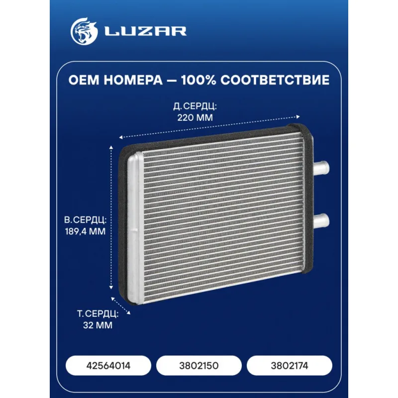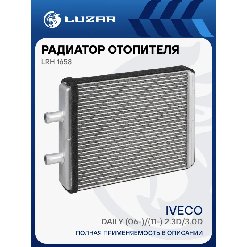 Радиатор отопителя для а/м Iveco Daily (06-)/(11-) 2.3D/3.0D Характеристики: Артикул: LRh 1658 OEM номера: 42564014, 3802150, 3802174 Трансмиссия: MT/AT Кондиционер: +/- Материал бачков: алюминий Тип сердцевины: паяная Сопутствующий товар: Электровентиляторы отопителя: LFh 1630; LFh 1641 Сопутствующий товар: Бачки расширительные: LET 1610 Длина сердцевины, мм: 220 Толщина сердцевины, мм: 32 Высота сердцевины, мм: 189,4 Материал сердцевины: алюминий Подходит для авто: Iveco Daily IV (06-), Daily V (11-) Для проверки применяемости отправьте VIN автомобиля через вкладку "Есть вопросы о товаре?" Комплектация: Радиатор отопителя Паспорт изделия Гарантия: от 1 года.