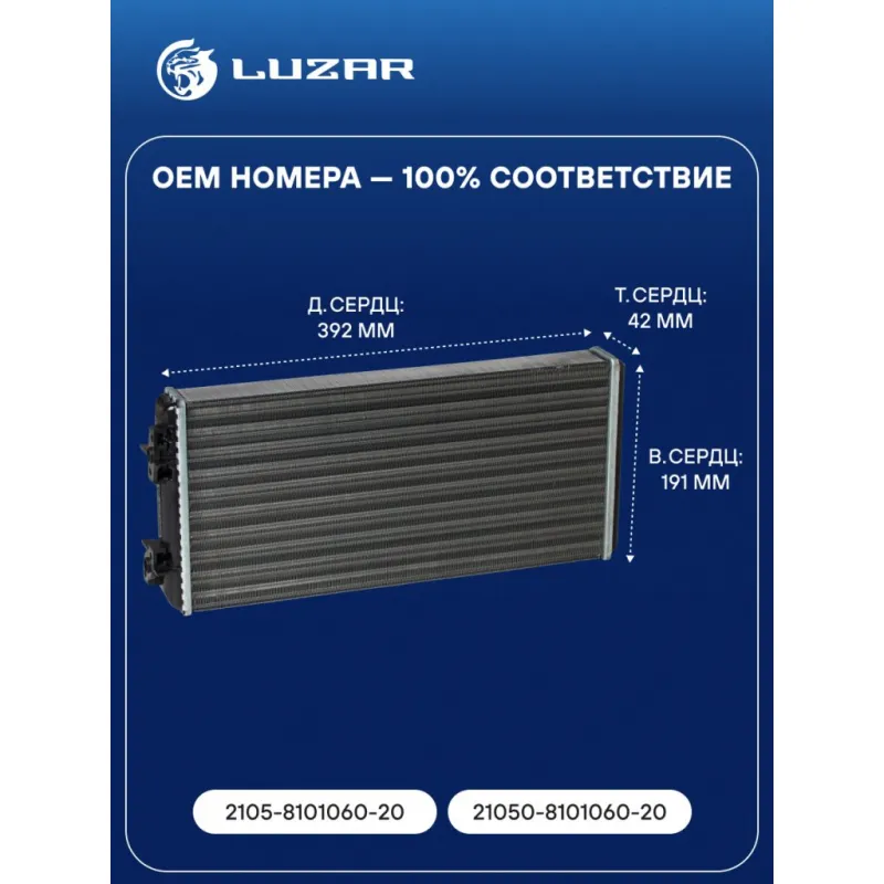 Радиатор отопителя для автобусов МАЗ 103 Характеристики: Артикул: LRh 1220 OEM номера: 2105-8101060-20, 21050-8101060-20 Трансмиссия: MT Кондиционер: +/- Материал сердцевины: алюминий Материал бачков: пластик Тип сердцевины: сборная Длина сердцевины, мм: 392 Толщина сердцевины, мм: 42 Высота сердцевины, мм: 191 Подходит для авто: ПАЗ 3205, 3206, 3237, 4230, 4234 МАЗ 103, 104, 105, 107, 152 ЛиАЗ 5256, 5292, 5293 NefAZ 5299 Volgabus 52701 RoAZ 5236 Bogdan A144, A145 Для проверки применяемости отправьте VIN автомобиля через вкладку "Есть вопросы о товаре?" Комплектация: Радиатор отопителя Паспорт изделия Гарантия: от 1 года.
