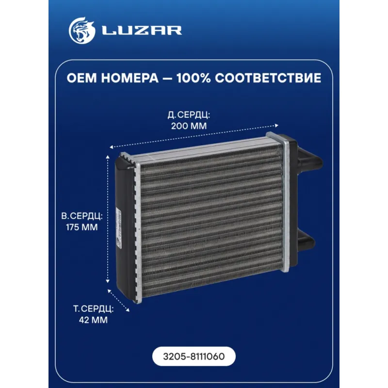 Радиатор отопителя для автобусов ПАЗ 3205 (алюминиевый, для универсального отопителя) Характеристики: Артикул: LRh 0324 OEM номера: 3205-8111060 Трансмиссия: MT Кондиционер: +/- Материал сердцевины: алюминий Материал бачков: пластик Тип сердцевины: сборная Длина сердцевины, мм: 200 Толщина сердцевины, мм: 42 Высота сердцевины, мм: 175 Подходит для авто: ПАЗ 3205, 3205, 3205 Для проверки применяемости отправьте VIN автомобиля через вкладку "Есть вопросы о товаре?" Комплектация: Радиатор отопителя Паспорт изделия Гарантия: от 1 года.