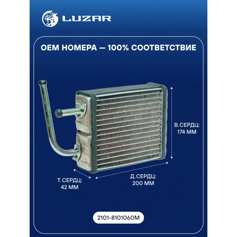 Радиатор отопителя для автомобилей 2101-2107 медный Характеристики: Артикул: LRh 0101c OEM номера: 2101-8101060M Трансмиссия: MT Кондиционер: - Длина сердцевины, мм: 200 Высота сердцевины, мм: 174 Толщина сердцевины, мм: 42 Тип сердцевины: паяная Материал сердцевины: медь Материал бачков: латунь Подходит для авто: ВАЗ 1111 (Ока), 2101, 2101, 2102, 2103, 2106, 2106, 2104, 2105, 2107, 2107, 21213, 2121, 21053, 21073, 2104, 2105, 2131, 2131, 2120, 2121 SeAZ 11116 VIS 2345 Для проверки применяемости отправьте VIN автомобиля через вкладку "Есть вопросы о товаре?" Комплектация: Радиатор отопителя Паспорт изделия Гарантия: от 1 года.