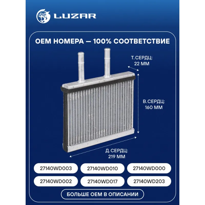 Радиатор отопителя для автомобилей AD (99-)/Wingroad II (99-) LRh 1412 LUZAR