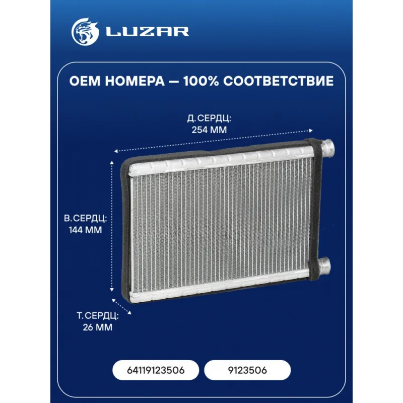 Радиатор отопителя для автомобилей BMW 3 (E90) (05-)/X3 (F25) (10-)/X1 (E84) (09-)/1 (E81) (04-) (тип Denso) Характеристики: Артикул: LRh 2601 OEM номера: 64119123506, 9123506 Материал бачков: алюминий Тип сердцевины: паяная Трансмиссия: MT/AT Кондиционер: +/- Длина сердцевины, мм: 254 Высота сердцевины, мм: 144 Толщина сердцевины, мм: 26 Материал сердцевины: алюминий Сопутствующий товар: Электровентиляторы отопителя: LFh 26173 Сопутствующий товар: Элементы для уплотнения соединений: LGS 0008 Подходит для авто: BMW 1 E81/E87 (04-), 1 E81/E87 (04-), 3 E90 (05-), 3 E90 (05-), X1 E84 (09-), X3 F25 (10-), X4 F26 (14-) Для проверки применяемости отправьте VIN автомобиля через вкладку "Есть вопросы о товаре?" Комплектация: Радиатор отопителя Паспорт изделия Гарантия: от 1 года.