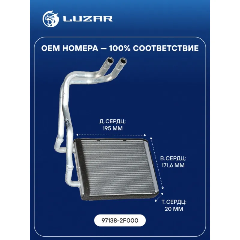 Радиатор отопителя для автомобилей Cerato (04-) Характеристики: Артикул: LRh 08F2 OEM номера: 97138-2F000 Материал бачков: алюминий Тип сердцевины: паяная Трансмиссия: MT/AT Кондиционер: +/- Длина сердцевины, мм: 195 Высота сердцевины, мм: 171.6 Толщина сердцевины, мм: 20 Материал сердцевины: алюминий Сопутствующий товар: Электровентиляторы отопителя: LFh 08F2 Подходит для авто: Kia Cerato I (04-) Для проверки применяемости отправьте VIN автомобиля через вкладку "Есть вопросы о товаре?" Комплектация: Радиатор отопителя Паспорт изделия Гарантия: от 1 года.
