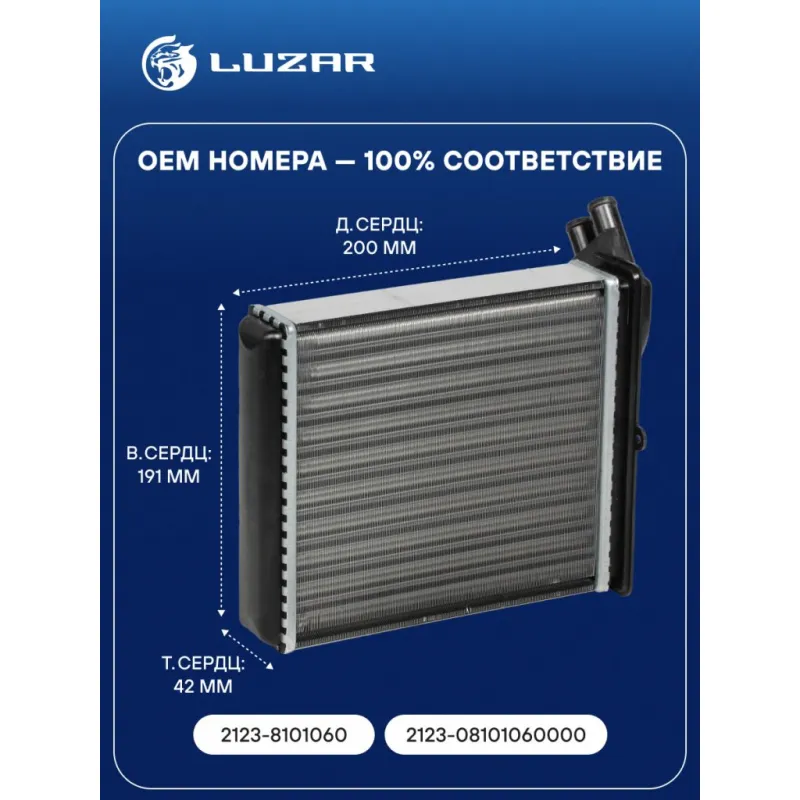 Радиатор отопителя для а/м Лада 2123 (02-)/Chevrolet Niva (02-) (сборный) Характеристики: Артикул: LRh 0123 OEM номера: 2123-8101060, 2123-08101060000 Трансмиссия: MT Кондиционер: +/- Длина сердцевины, мм: 200 Высота сердцевины, мм: 191 Толщина сердцевины, мм: 42 Тип сердцевины: сборная Материал сердцевины: алюминий Аналог: LRh 0125 (паяная сердцевина) Подходит для авто: ВАЗ 2123 Chevrolet Niva (02-) Для проверки применяемости отправьте VIN автомобиля через вкладку "Есть вопросы о товаре?" Комплектация: Радиатор отопителя Паспорт изделия Гарантия: от 1 года.