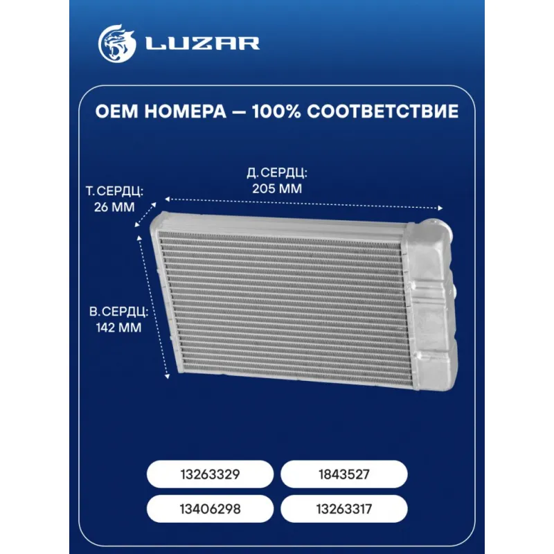 Радиатор отопителя для автомобилей Cruze (10-)/Orlando (10-) Характеристики: Артикул: LRh 0551 OEM номера: 13263329, 1843527, 13406298, 13263317 Трансмиссия: MT/AT Кондиционер: +/- Комплектация: Хомуты, уплотнительные резиновые кольца Материал сердцевины: алюминий Материал бачков: алюминий Тип сердцевины: паяная Сопутствующий товар: Электровентиляторы отопителя: LFh 0550; LFh 18K1; LFh 18K2; LFh 2102 Сопутствующий товар: Элементы для уплотнения соединений: LGS 0002; LGS 0006; LGS 0009; LGS 0010; LGS 0017; LGS 0003 Длина сердцевины, мм: 205 Толщина сердцевины, мм: 26 Высота сердцевины, мм: 142 Подходит для авто: Chevrolet Cruze (09-), Cruze (09-), Orlando (10-), Malibu (11-) Opel Meriva B (10-), Insignia (08-) SAAB 9-5 (10-) Для проверки применяемости отправьте VIN автомобиля через вкладку "Есть вопросы о товаре?" Комплектация: Радиатор отопителя Паспорт изделия Хомуты - 2 шт Уплотнительные резиновые кольца - 2 шт Гарантия: от 1 года.