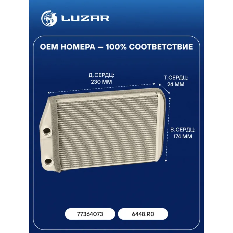 Радиатор отопителя для автомобилей Fiat Ducato (06-)/PSA Boxer (06-)/Jumper (06-) Характеристики: Артикул: LRh 1680 OEM номера: 77364073, 6448.R0 Материал бачков: алюминий Тип сердцевины: паяная Сопутствующий товар: Элементы для уплотнения соединений: LGS 0030 Трансмиссия: MT/AT Кондиционер: +/- Длина сердцевины, мм: 230 Высота сердцевины, мм: 174 Толщина сердцевины, мм: 24 Материал сердцевины: алюминий Сопутствующий товар: Электровентиляторы отопителя: LFh 1680 Подходит для авто: Peugeot Boxer (06-), Boxer (06-) Fiat Ducato III (06-) Для проверки применяемости отправьте VIN автомобиля через вкладку "Есть вопросы о товаре?" Комплектация: Радиатор отопителя Паспорт изделия Гарантия: от 1 года.