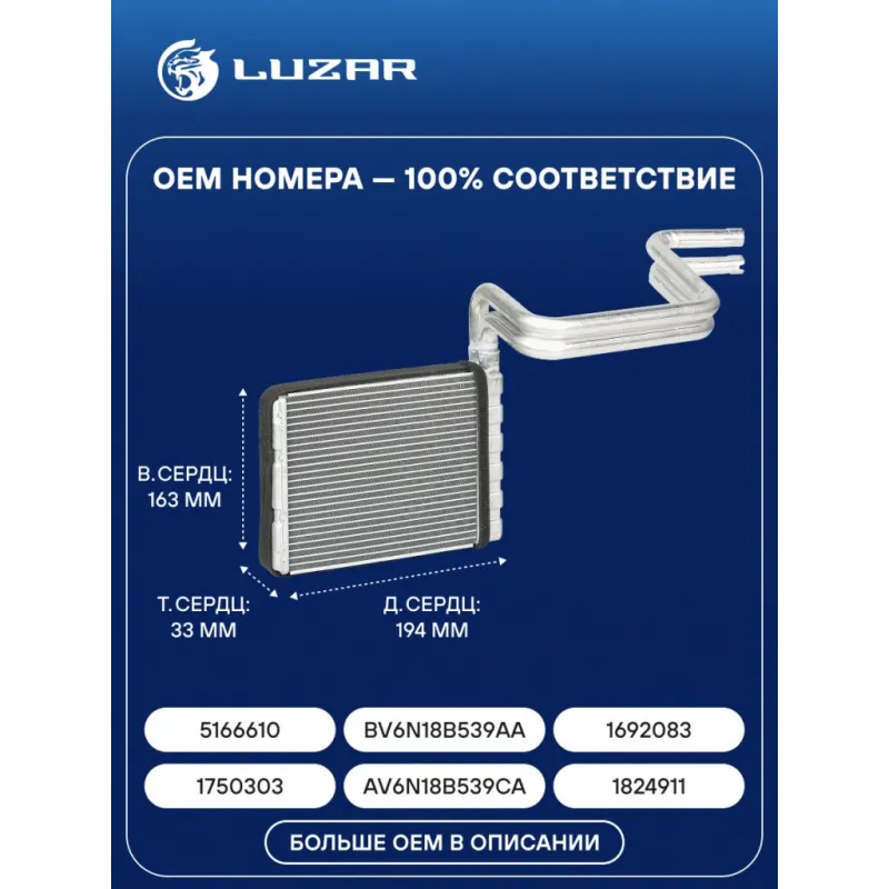Радиатор отопителя для автомобилей Focus III (11-)/C-Max (10-)/Kuga (12-) LRh 1075 LUZAR