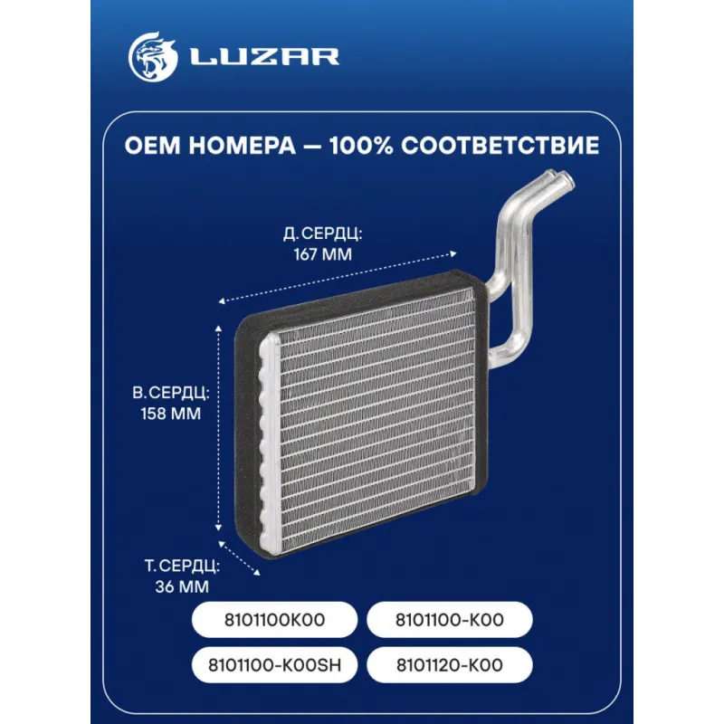 Радиатор отопителя для автомобилей Hover (05-)/Hover H3 (10-)/Hover Н5 (10-) Характеристики: Артикул: LRh 3007 OEM номера: 8101100K00, 8101100-К00, 8101100-K00SH, 8101120-K00 Трансмиссия: MT/AT Кондиционер: +/- Длина сердцевины, мм: 167 Высота сердцевины, мм: 158 Толщина сердцевины, мм: 36 Тип сердцевины: паяная Материал сердцевины: алюминий Тип конструкции: с трубками в сборе Сопутствующий товар: Электровентиляторы отопителя: LFh 3005 Подходит для авто: Great Wall Hover (05-), Hover H3 I (10-), Hover H5 (11-) Для проверки применяемости отправьте VIN автомобиля через вкладку "Есть вопросы о товаре?" Комплектация: Радиатор отопителя Паспорт изделия Гарантия: от 1 года.
