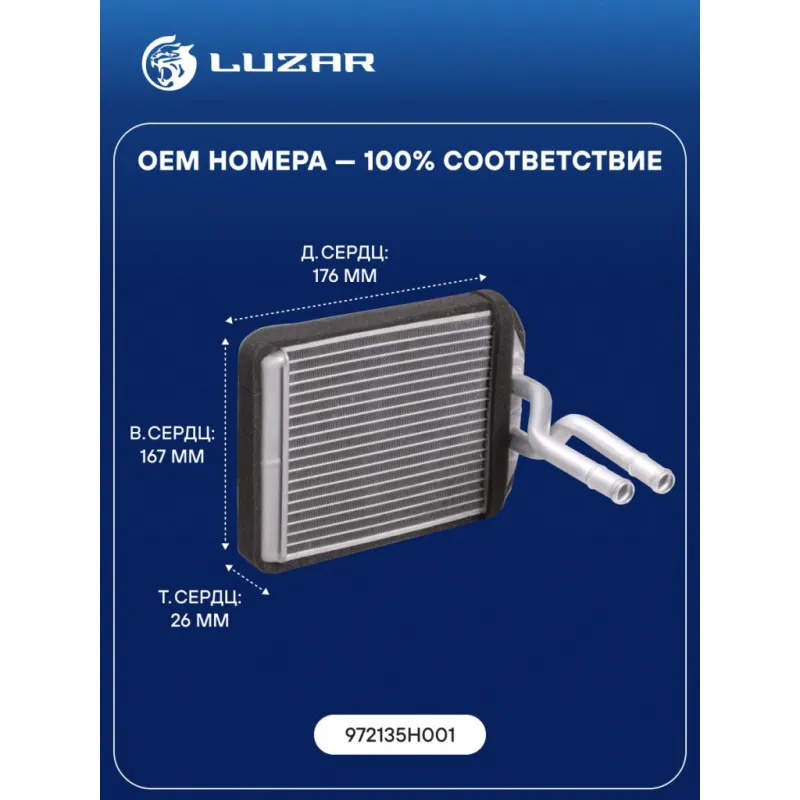 Радиатор отопителя для автомобилей Hyundai HD (98-)/County (98-) Характеристики: Артикул: LRh 0809 OEM номера: 972135H001 Материал бачков: алюминий Тип сердцевины: паяная Трансмиссия: MT/AT Кондиционер: +/- Длина сердцевины, мм: 176 Высота сердцевины, мм: 167 Толщина сердцевины, мм: 26 Материал сердцевины: алюминий Материал: Алюминий Подходит для авто: Hyundai HD 45/65/72/78 (04-) Для проверки применяемости отправьте VIN автомобиля через вкладку "Есть вопросы о товаре?" Комплектация: Радиатор отопителя Паспорт изделия Гарантия: от 1 года.