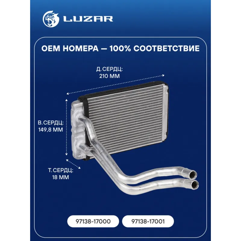 Радиатор отопителя для автомобилей Hyundai Matrix (01-) Характеристики: Артикул: LRh 0827 OEM номера: 97138-17000, 97138-17001 Тип конструкции: с трубками в сборе Трансмиссия: MT/AT Кондиционер: +/- Материал сердцевины: алюминий Материал бачков: алюминий Тип сердцевины: паяная Сопутствующий товар: Электровентиляторы отопителя: LFh 0817 Длина сердцевины, мм: 210 Толщина сердцевины, мм: 18 Высота сердцевины, мм: 149.8 Подходит для авто: Hyundai Matrix (01-) Для проверки применяемости отправьте VIN автомобиля через вкладку "Есть вопросы о товаре?" Комплектация: Радиатор отопителя Ппаспорт изделия Гарантия: от 1 года.