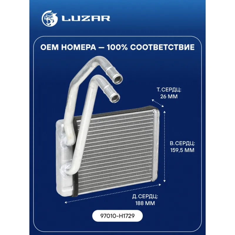 Радиатор отопителя для автомобилей Hyundai Terracan (01-) Характеристики: Артикул: LRh 0804 OEM номера: 97010-H1729 Трансмиссия: MT/AT Кондиционер: +/- Длина сердцевины, мм: 188 Высота сердцевины, мм: 159.5 Толщина сердцевины, мм: 26 Тип сердцевины: паяная Материал сердцевины: алюминий Тип конструкции: с трубками в сборе Подходит для авто: Hyundai Terracan (01-) Для проверки применяемости отправьте VIN автомобиля через вкладку "Есть вопросы о товаре?" Комплектация: Радиатор отопителя Паспорт изделия Гарантия: от 1 года.