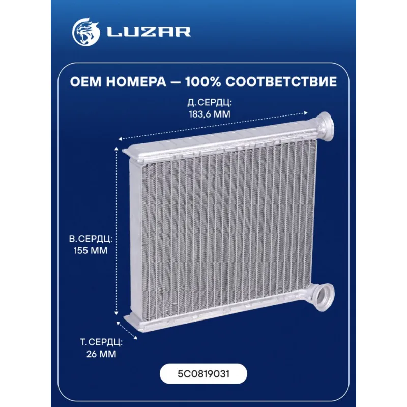 Радиатор отопителя для автомобилей Jetta (10-) Характеристики: Артикул: LRh 1835 OEM номера: 5C0819031 Материал бачков: алюминий Тип сердцевины: паяная Трансмиссия: MT/AT Кондиционер: +/- Длина сердцевины, мм: 183.6 Высота сердцевины, мм: 155 Толщина сердцевины, мм: 26 Материал сердцевины: алюминий Сопутствующий товар: Электровентиляторы отопителя: LFh 1801; LFh 18K1; LFh 18K2 Подходит для авто: Volkswagen Jetta (11-) Для проверки применяемости отправьте VIN автомобиля через вкладку "Есть вопросы о товаре?" Комплектация: Радиатор отопителя Паспорт изделия Гарантия: от 1 года.
