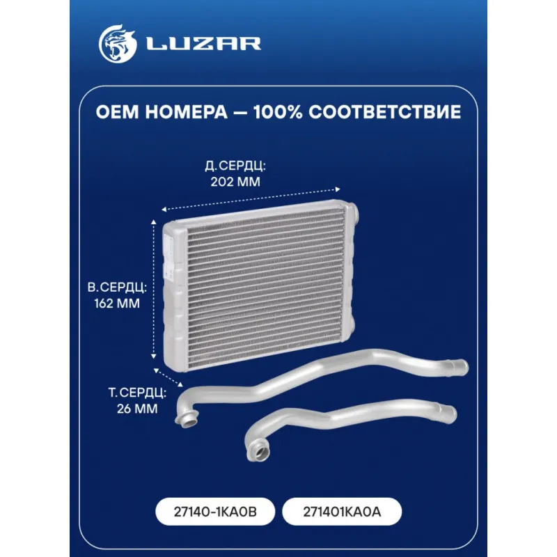 Радиатор отопителя для автомобилей Juke (F15) (10-) Характеристики: Артикул: LRh 14KA OEM номера: 27140-1KA0B, 271401KA0A Тип конструкции: со съемными трубками Трансмиссия: MT/AT Кондиционер: +/- Комплектация: Трубки, хомуты, уплотнительные кольца Материал сердцевины: алюминий Материал бачков: алюминий Тип сердцевины: паяная Длина сердцевины, мм: 202 Толщина сердцевины, мм: 26 Высота сердцевины, мм: 162 Подходит для авто: Nissan Juke (10-) Для проверки применяемости отправьте VIN автомобиля через вкладку "Есть вопросы о товаре?" Комплектация: Радиатор отопителя Паспорт изделия Трубки отопителя - 2 шт Фиксаторы трубок - 2 шт Уплотнительные кольца - 2 шт Гарантия: от 1 года.