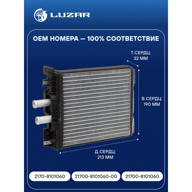 Радиатор отопителя для а/м Лада 1118/2170 Калина/Приора (тип Panasonic) А/С+ (паяный) Характеристики: Артикул: LRh 01182b OEM номера: 2170-8101060, 21700-8101060-00, 21700-8101060 Материал бачков: алюминий Тип сердцевины: паяная Трансмиссия: MT Кондиционер: +/- Длина сердцевины, мм: 213 Высота сердцевины, мм: 190 Толщина сердцевины, мм: 32 Материал сердцевины: алюминий Подходит для авто: ВАЗ Kalina (04-), Priora (07-), Kalina (04-), Kalina (04-) Для проверки применяемости отправьте VIN автомобиля через вкладку "Есть вопросы о товаре?" Комплектация: Радиатор отопителя Паспорт изделия Гарантия: от 1 года.