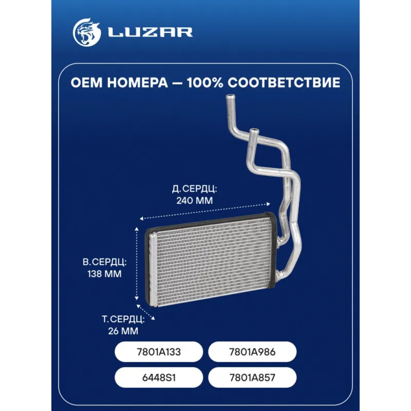 Радиатор отопителя для автомобилей Lancer (09-)/ASX (10-)/Outlander XL (09-) LRh 1104 LUZAR