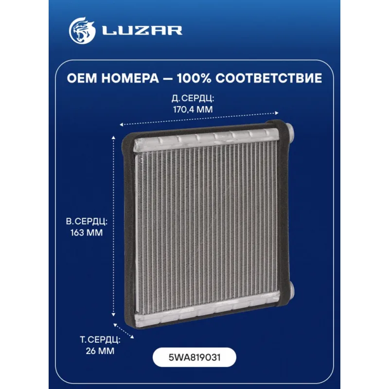 Радиатор отопителя для автомобилей Octavia A8 (20-) (тип Denso) Характеристики: Артикул: LRh 1815 OEM номера: 5WA819031 Трансмиссия: MT/AT Кондиционер: +/- Материал сердцевины: алюминий Материал бачков: алюминий Тип сердцевины: паяная Сопутствующий товар: Элементы для уплотнения соединений: LGS 0030 Длина сердцевины, мм: 170,4 Толщина сердцевины, мм: 26 Высота сердцевины, мм: 163 Подходит для авто: Skoda Octavia A8 (20-), Kodiaq (16-), Kodiaq (16-), Karoq (17-) Volkswagen Crafter (16-), Golf VII (12-), Passat B8 (15-), Golf VII (12-), Passat B8 (15-), Tiguan (16-) Для проверки применяемости отправьте VIN автомобиля через вкладку "Есть вопросы о товаре?" Комплектация: Радиатор отопителя - 1 шт Паспорт изделия - 1 шт Гарантия: от 1 года.