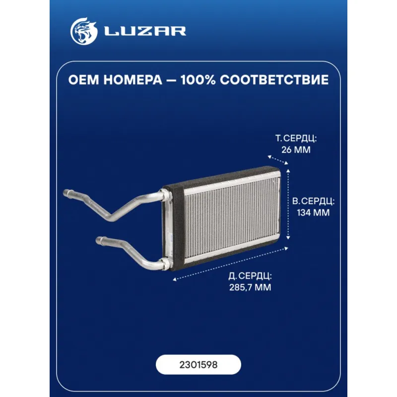 Радиатор отопителя для автомобилей Scania 6 (L,P,G,R,S-series) (16-) Характеристики: Артикул: LRh 2810 OEM номера: 2301598 Тип конструкции: с трубками в сборе Трансмиссия: MT/AT Кондиционер: +/- Материал сердцевины: алюминий Материал бачков: алюминий Тип сердцевины: паяная Длина сердцевины, мм: 285,7 Толщина сердцевины, мм: 26 Высота сердцевины, мм: 134 Подходит для авто: Scania L-serie (16-), P-serie (16-), R-serie (16-) Для проверки применяемости отправьте VIN автомобиля через вкладку "Есть вопросы о товаре?" Комплектация: Радиатор отопителя - 1 шт Паспорт изделия - 1 шт Гарантия: от 1 года.