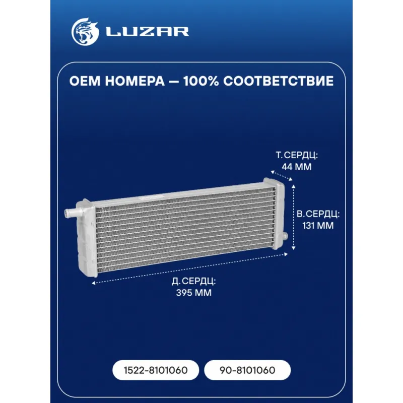 Радиатор отопителя для трактора МТЗ-1221/1523/2022 Характеристики: Артикул: LRh 0622 OEM номера: 1522-8101060, 90-8101060 Трансмиссия: MT Кондиционер: +/- Материал сердцевины: алюминий Материал бачков: алюминий Тип сердцевины: паяная Длина сердцевины, мм: 395 Толщина сердцевины, мм: 44 Высота сердцевины, мм: 131 Подходит для авто: MTZ 1221, 1222, 1223, 1523, 92П, 922.5, 826, 2022 Для проверки применяемости отправьте VIN автомобиля через вкладку "Есть вопросы о товаре?" Комплектация: Радиатор отопителя Паспорт изделия Гарантия: от 1 года.