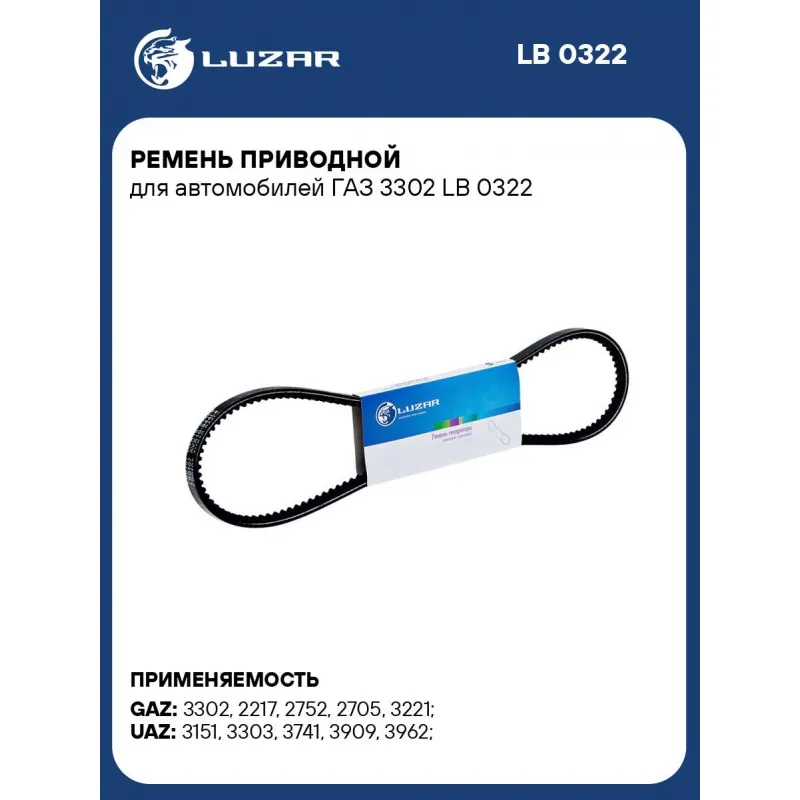 Ремень приводной для автомобилей ГАЗ 3302 Характеристики: Артикул: LB 0322 OEM номера: 14-1308020, AVX 10-900 Длина, мм: 900 Количество на автомобиль: 1 Трансмиссия: MT Кондиционер: - Подходит для авто: ГАЗ 3302, 2217, 2752, 2705, 3221 УАЗ 3151 (85-), 3303, 3741, 3909, 3962 Для проверки применяемости отправьте VIN автомобиля через вкладку "Есть вопросы о товаре?" Комплектация: Ремень генератора Гарантия: от 1 года.