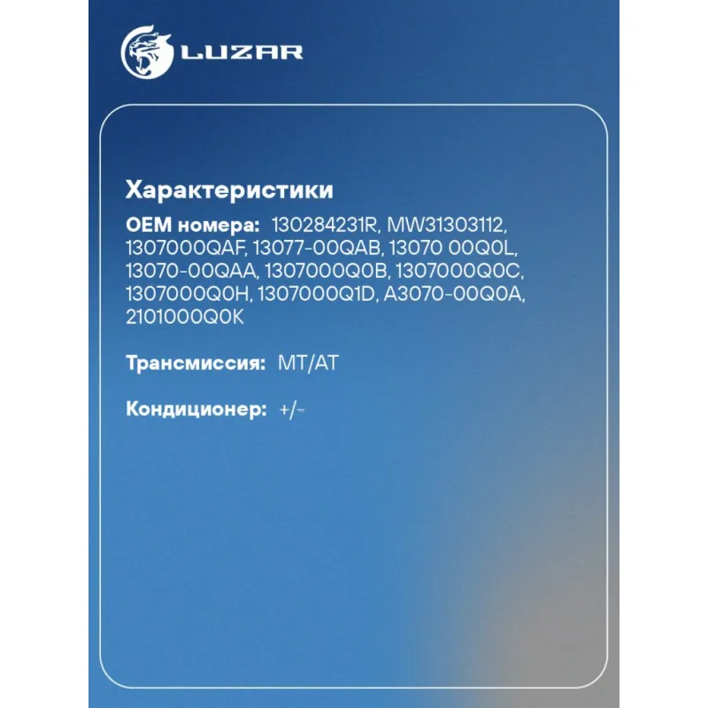 | Количество на автомобиль | 1 |