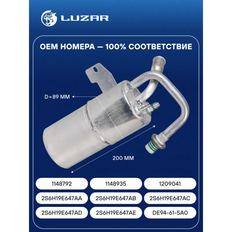 Ресивер-осушитель конденсора для автомобилей Fusion (02-)/Fiesta (01-) Характеристики: Артикул: LCR 1006 OEM номера: 1209041, DE94-61-5A0, 1148792, 1148935, 2S6H19E647AA, 2S6H19E647AB, 2S6H19E647AC, 2S6H19E647AD, 2S6H19E647AE Сопутствующий товар: Компрессоры кондиционера: LCAC 1031 Хладагент: R-134a Сопутствующий товар: Радиаторы кондиционера (конденсеры): LRAC 1031 Подходит для авто: Ford Fiesta (01-), Fusion (02-), Fiesta (01-), Fusion (02-) Для проверки применяемости отправьте VIN автомобиля через вкладку "Есть вопросы о товаре?" Комплектация: Ресивер-осушитель Паспорт изделия Гарантия: от 1 года.