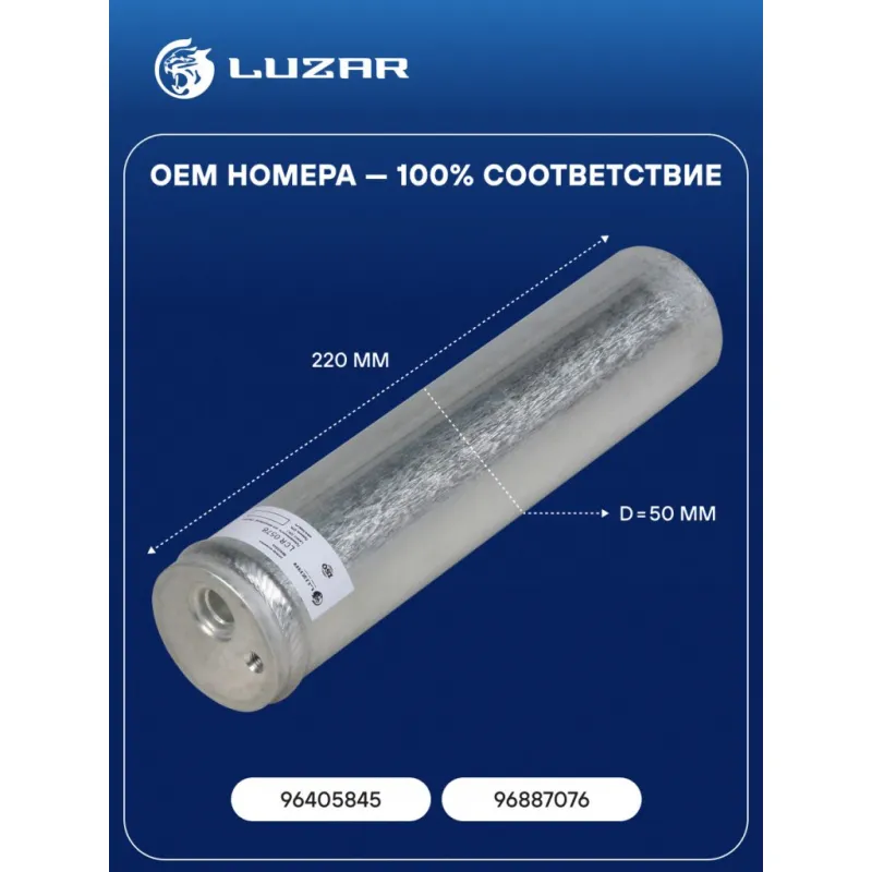 Ресивер-осушитель конденсора для автомобилей Lacetti (04-) Характеристики: Артикул: LCR 0578 OEM номера: 96405845, 96887076 Хладагент: R-134a Материал: Алюминий Высота: 220 Диаметр: 50 Сопутствующий товар: Радиаторы кондиционера (конденсеры): LRAC 0578 Сопутствующий товар: Клапаны расширительные кондиционера (ТРВ): LTRV 0578 Сопутствующий товар: Компрессоры кондиционера: LCAC 0578 Сопутствующий товар: Электровентиляторы кондиционера: LFAC 0541 Совместимость с радиаторами кондиционера LUZAR: Несовместим Подходит для авто: Chevrolet Lacetti (04-) Для проверки применяемости отправьте VIN автомобиля через вкладку "Есть вопросы о товаре?" Комплектация: Ресивер - осушитель Гарантия: от 1 года.