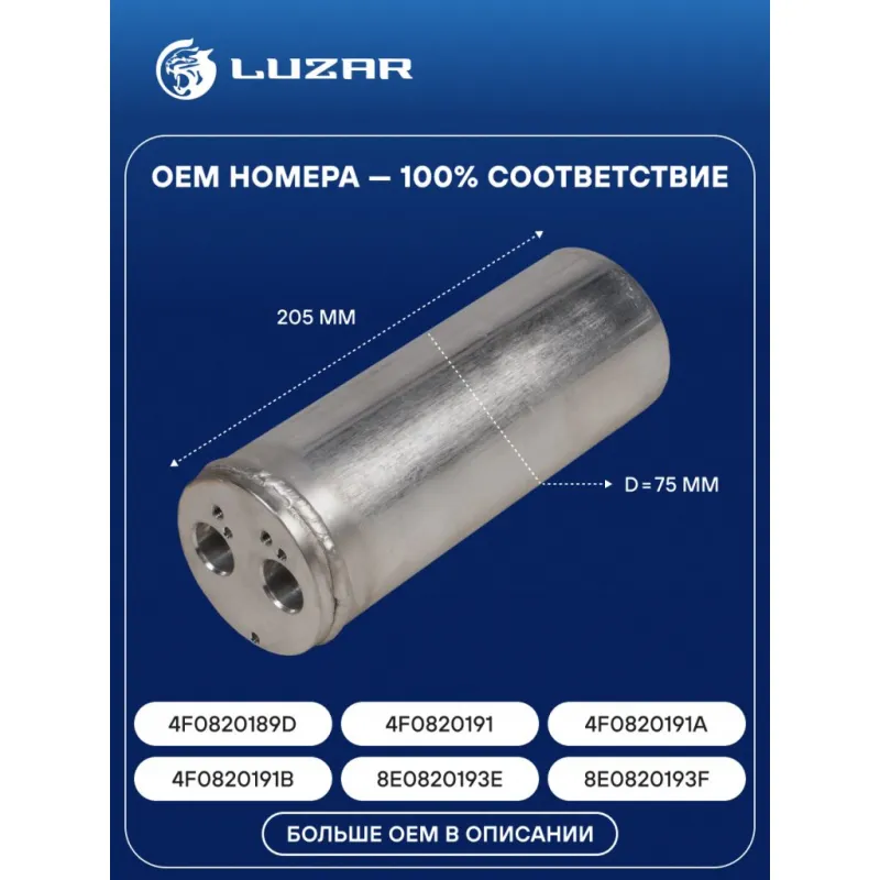Ресивер-осушитель кондиционера для автомобилей Audi A4 (B6) (00-)/A6 (C6) (04-) LCR 1802 LUZAR