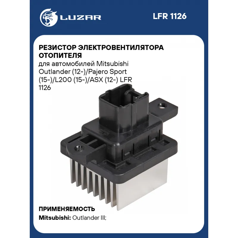 Резистор электровентилятора отопителя для автомобилей Mitsubishi Outlander (12-)/Pajero Sport (15-)/L200 (15-)/ASX (12-) Характеристики: Артикул: LFR 1126 OEM номера: 7802A240 Количество на автомобиль: 1 Сопутствующий товар: Электровентиляторы отопителя: LFh 1104; LFh 1126; LFh 1149 Подходит для авто: Mitsubishi Outlander III (12-), Pajero Sport (15-), L200 (15-), Eclipse Cross (17-), Outlander III (12-), ASX (10-) Для проверки применяемости отправьте VIN автомобиля через вкладку "Есть вопросы о товаре?" Комплектация: Резистор электровентилятора - 1 шт Гарантия: от 1 года.