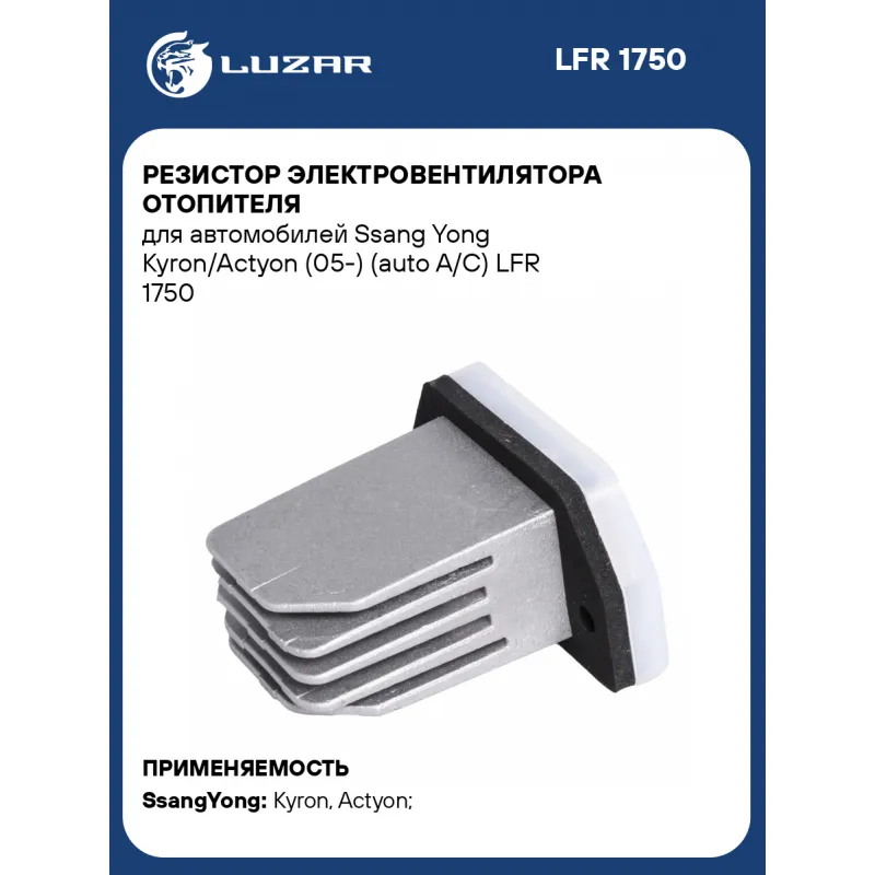 Резистор электровентилятора отопителя для автомобилей Ssang Yong Kyron/Actyon (05-) (auto A/C) Характеристики: Артикул: LFR 1750 OEM номера: 6811834000, 6811109170 Количество на автомобиль: 1 Сопутствующий товар: Электровентиляторы отопителя: LFh 1750 Подходит для авто: SsangYong Kyron (05-), Actyon (05-), Actyon Sport (05-), Kyron (05-), Actyon (05-) Для проверки применяемости отправьте VIN автомобиля через вкладку "Есть вопросы о товаре?" Комплектация: Резистор электровентилятора - 1 шт Гарантия: от 1 года.