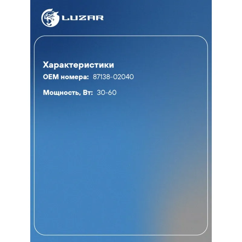 Резистор электровентилятора отопителя для автомобилей Toyota Corolla (E12) (01-) Характеристики: Артикул: LFR 1900 OEM номера: 87138-02040 Количество на автомобиль: 1 Сопутствующий товар: Электровентиляторы отопителя: LFh 19D0 Напряжение: 12V Мощность, Вт: 30-60 Подходит для авто: Toyota Corolla E120 (01-), Corolla E120 (01-) Для проверки применяемости отправьте VIN автомобиля через вкладку "Есть вопросы о товаре?" Комплектация: Резистор электровентилятора - 1 шт Гарантия: от 1 года.