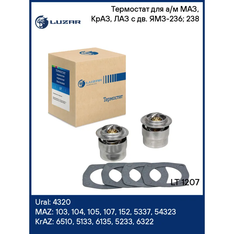Термостат для а/м МАЗ, КрАЗ, ЛАЗ c дв. ЯМЗ-236; 238 (набор 2 термоэл. + 4 прокл.) LT 1207 LUZAR