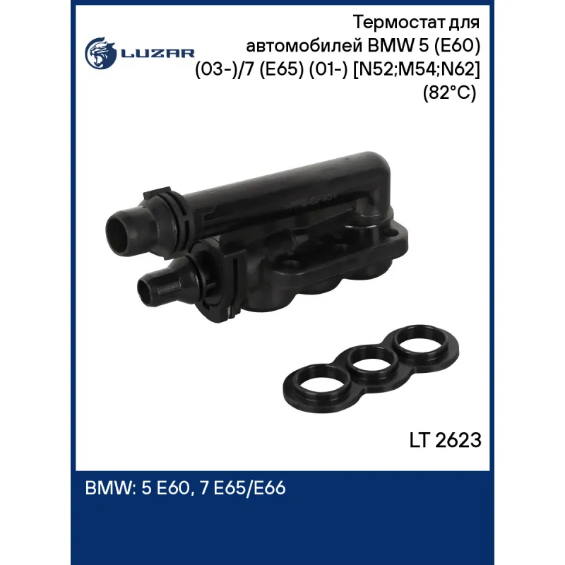 Термостат для автомобилей BMW 5 (E60) (03-)/7 (E65) (01-) [N52;M54;N62] (82°С) (с корпусом, охлаждение масла АКПП) Характеристики: Артикул: LT 2623 OEM номера: 17217559962, 17127507982, 17127507983 Трансмиссия: AT Кондиционер: + Температура открытия, ?С: 82 Количество на автомобиль: 1 Двигатель: [N52;M54;N62] Комплектация: уплотнительная прокладка; 2 быстросъема Материал корпуса: пластик Область применения: для автомобилей с теплообменником для охлаждения масла Подходит для авто: BMW 5 E60 (03-), 5 E60 (03-), 7 E65/E66 (01-), 7 E65/E66 (01-), 7 E65/E66 (01-) Для проверки применяемости отправьте VIN автомобиля через вкладку "Есть вопросы о товаре?" Комплектация: термостат - 1 шт Уплотнительная прокладка - 1 шт Паспорт изделия - 1 шт Гарантия: от 1 года.