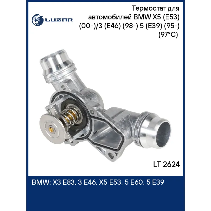 Термостат для автомобилей BMW X5 (E53) (00-)/3 (E46) (98-) 5 (E39) (95-) (97°С) (с алюминиевым корпусом) Характеристики: Артикул: LT 2624 OEM номера: 11531437040, 11531436823, 11537509227 Трансмиссия: MT/AT Кондиционер: + Количество на автомобиль: 1 Температура открытия, ?С: 97 Комплектация: уплотнительная прокладка Материал корпуса: алюминий Вид эксплуатации: электронное управление Основной клапан: обрезиненный Примечание: аналог LT 2625 (пластик. корпус) Подходит для авто: BMW X3 E83 (04-), 3 E46 (98-), X5 E53 (99-), 5 E60 (03-), 5 E60 (03-), 5 E39 (95-), 7 E38 (94-) Для проверки применяемости отправьте VIN автомобиля через вкладку "Есть вопросы о товаре?" Комплектация: термостат - 1 шт Уплотнительная прокладка - 1 шт Паспорт изделия - 1 шт Гарантия: от 1 года.