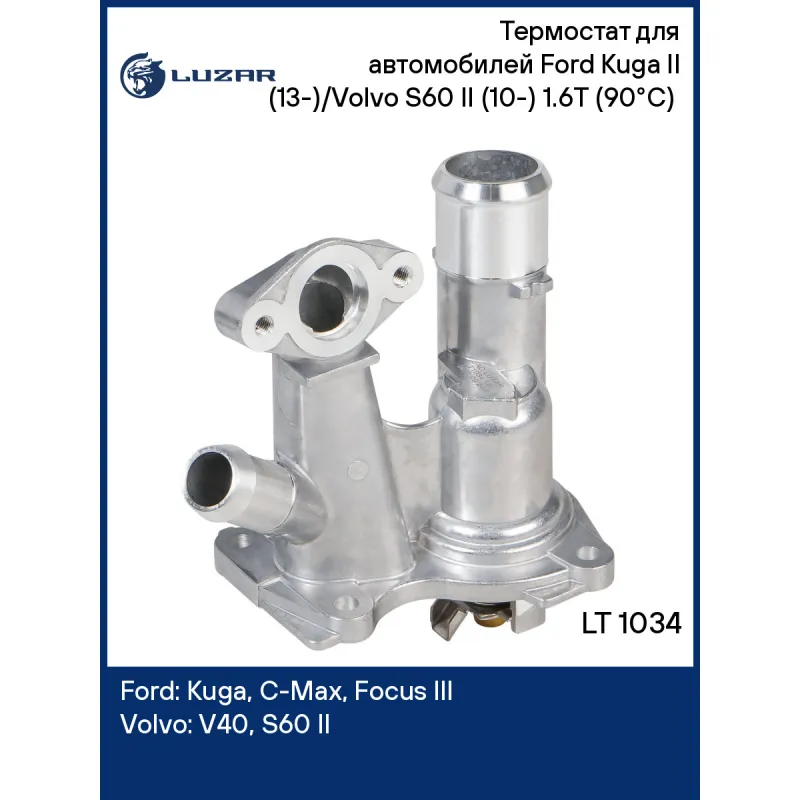 Термостат для автомобилей Ford Kuga II (13-)/Volvo S60 II (10-) 1.6T (90°C) (с корпусом) Характеристики: Артикул: LT 1034 OEM номера: 1767974, 1709827, 1692915, BM5G6L721DB, BM5G9K478AA, BM5G9K478AB, BM5Z8592B, 31359806 Трансмиссия: AT Кондиционер: + Температура открытия, ?С: 90 Количество на автомобиль: 1 Двигатель: [JTMA; JQDA; JQDB; B4164T] Комплектация: уплотнительная прокладка Материал корпуса: алюминий Подходит для авто: Ford Kuga (13-), C-Max (11-), Focus III (11-) Volvo V40 (12-), S60 II (10-) Для проверки применяемости отправьте VIN автомобиля через вкладку "Есть вопросы о товаре?" Комплектация: термостат - 1 шт Паспорт изделия - 1 шт Уплотнительная прокладка - 1 шт Гарантия: от 1 года.