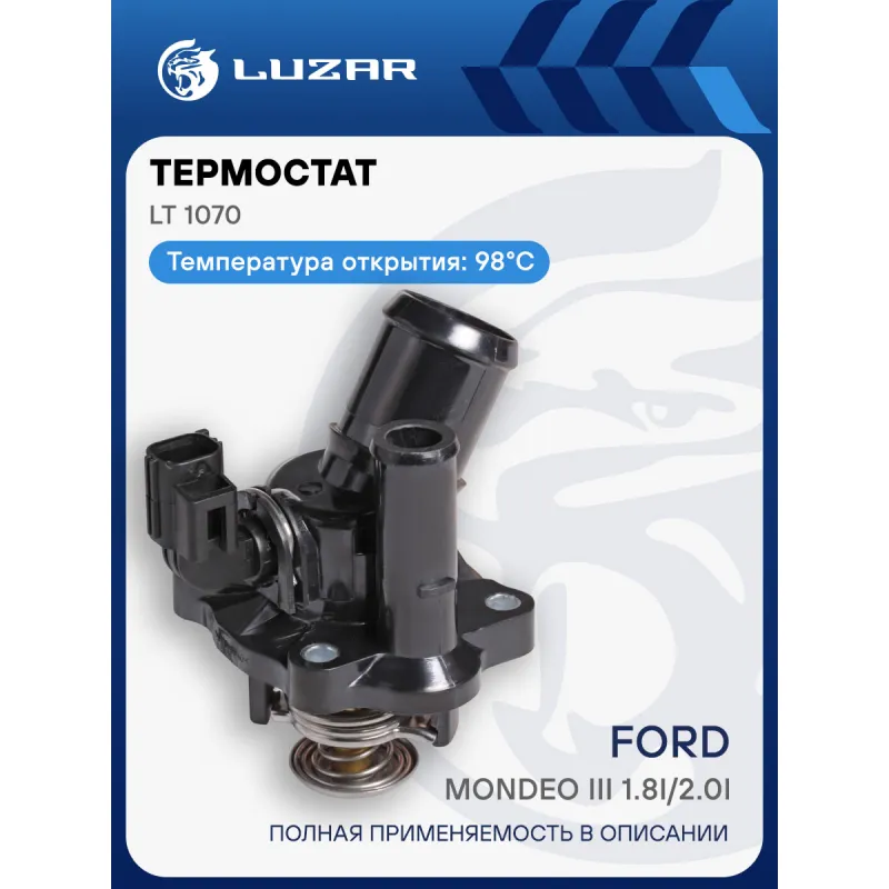 Термостат для автомобилей Ford Mondeo III (00-) 1.8i/2.0i (98°С) (с корпусом) Характеристики: Артикул: LT 1070 OEM номера: 1358178, 1217827, 1355790, 1135768, 1122497 Количество на автомобиль: 1 Трансмиссия: MT/AT Температура открытия, ?С: 98 Сопутствующий товар: Насосы водяные (помпы): LWP 1052 Сопутствующий товар: Радиаторы охлаждения: LRc 1070 Сопутствующий товар: Электровентиляторы охлаждения: LFK 1070 Комплектация: уплотнительная прокладка Материал корпуса: пластик Вид эксплуатации: электронное управление Подходит для авто: Ford Mondeo III (00-) Для проверки применяемости отправьте VIN автомобиля через вкладку "Есть вопросы о товаре?" Комплектация: термостат - 1 шт Уплотнительная прокладка - 1 шт Паспорт изделия - 1 шт Гарантия: от 1 года.