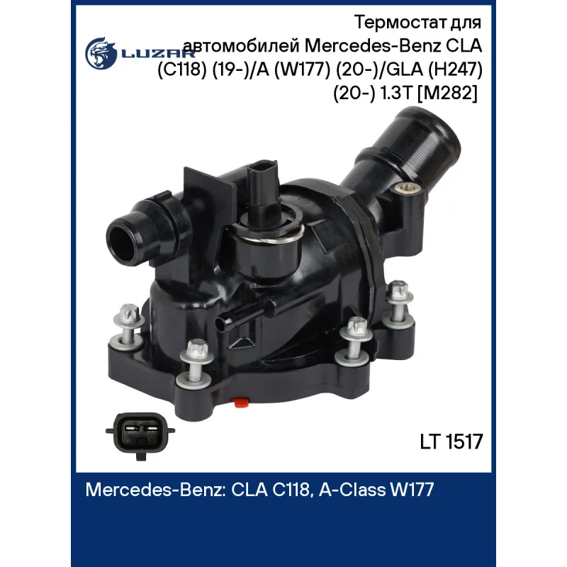 Термостат для автомобилей Mercedes-Benz CLA (C118) (19-)/A (W177) (20-)/GLA (H247) (20-) 1.3T [M282] (98°С) Характеристики: Артикул: LT 1517 OEM номера: A2822030175, 2822030175, A282203017528, 282203017528 Трансмиссия: AT Кондиционер: + Количество на автомобиль: 1 Температура открытия, ?С: 98 Комплектация: уплотнительная прокладка Материал корпуса: пластик Вид эксплуатации: электронное управление Подходит для авто: Mercedes-Benz CLA C118 (19-), A-Class W177 (18-), B-Class W247 (18-), GLA H247 (20-), GLB X247 (19-) Для проверки применяемости отправьте VIN автомобиля через вкладку "Есть вопросы о товаре?" Комплектация: термостат - 1 шт Уплотнительная прокладка - 1 шт Паспорт изделия - 1 шт Гарантия: от 1 года.
