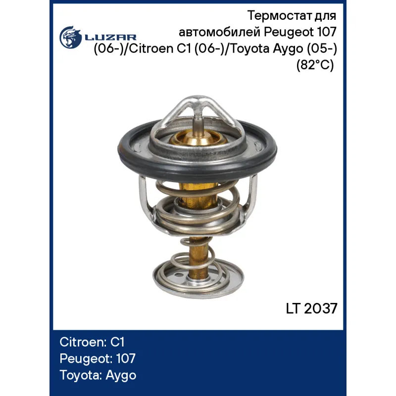 Термостат для автомобилей Peugeot 107 (06-)/Citroen C1 (06-)/Toyota Aygo (05-) (82°С) (термоэлемент) Характеристики: Артикул: LT 2037 OEM номера: 1338.E8, 9091603134, 9091603150, 1612425380 Трансмиссия: MT/AT Кондиционер: + Количество на автомобиль: 1 Температура открытия, ?С: 82 Комплектация: уплотнительная прокладка Основной клапан: обрезиненный Подходит для авто: Citroen C1 (14-), C1 (05-) Peugeot 107 (05-) Toyota Aygo (05-) Для проверки применяемости отправьте VIN автомобиля через вкладку "Есть вопросы о товаре?" Комплектация: термостат - 1 шт Уплотнительная прокладка - 1 шт Паспорт изделия - 1 шт Гарантия: от 1 года.