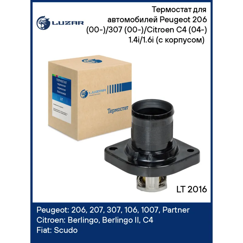Термостат для автомобилей Peugeot 206 (00-)/307 (00-)/Citroen C4 (04-) 1.4i/1.6i (с корпусом) (89°С) Характеристики: Артикул: LT 2016 OEM номера: 9630066780, 1336.Q1, 1336.N5 Количество на автомобиль: 1 Трансмиссия: MT/AT Температура открытия, ?С: 89 Кондиционер: +/- Сопутствующий товар: Насосы водяные (помпы): LWP 2002; LWP 2003; LWP 2016; LWP 2020; LWP 2023 Сопутствующий товар: Радиаторы охлаждения: LRc 2009; LRc 20F4; LRc 20G1; LRc 20W2 Сопутствующий товар: Электровентиляторы охлаждения: LFc 20206; LFK 20206; LFK 20207; LFK 2022; LFK 20308 Комплектация: уплотнительная прокладка Материал корпуса: пластик Подходит для авто: Peugeot 206 (00-), 207 (06-), 307 (00-), 106 (96-), 1007 (05-), Partner (96-), 306 (97-), Partner (08-) Citroen Berlingo (00-), Berlingo II (08-), C4 (04-), C-Elysee (12-), Xsara II (00-), C2 (03-), C3 (02-), Saxo (96-), Jumpy (95-) Fiat Scudo (96-) Для проверки применяемости отправьте VIN автомобиля через вкладку "Есть вопросы о товаре?" Комплектация: термостат - 1 шт Уплотнительная прокладка - 1 шт Паспорт изделия - 1 шт Гарантия: от 1 года.