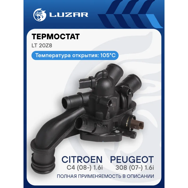 Термостат для автомобилей Peugeot 308 (07-)/Citroen C4 (08-) 1.6i MT (рифленые патрубки и два датчика) LT 20Z8 LUZAR