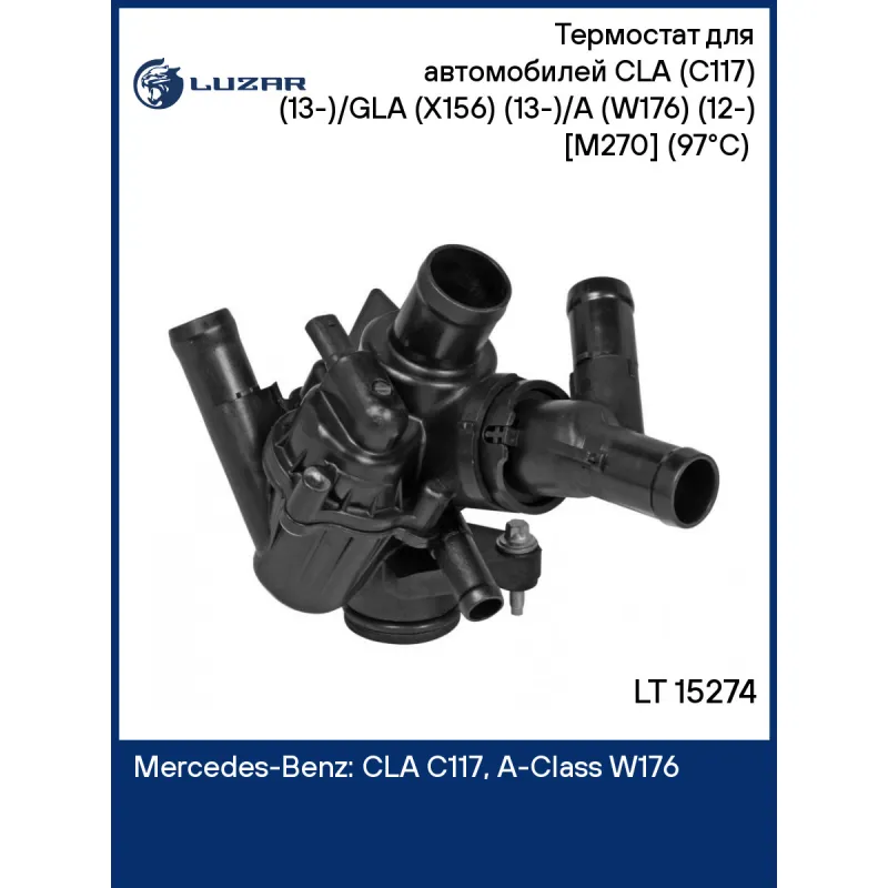 Термостат для автомобилей СLA (C117) (13-)/GLA (X156) (13-)/A (W176) (12-) [M270] (97°C) (с корпусом) Характеристики: Артикул: LT 15274 OEM номера: A2702000415, A2702000615, A2702000315, 2702000415, 2702000615, 2702000315, A2702002200, 2702002200 Количество на автомобиль: 1 Трансмиссия: AT Температура открытия, ?С: 97 Двигатель: [M270] Материал корпуса: пластик Вид эксплуатации: электронное управление Подходит для авто: Mercedes-Benz CLA C117 (13-), A-Class W176 (12-), B-Class W246 (13-), GLA X156 (13-) Для проверки применяемости отправьте VIN автомобиля через вкладку "Есть вопросы о товаре?" Комплектация: термостат - 1 шт Паспорт изделия - 1 шт Гарантия: от 1 года.