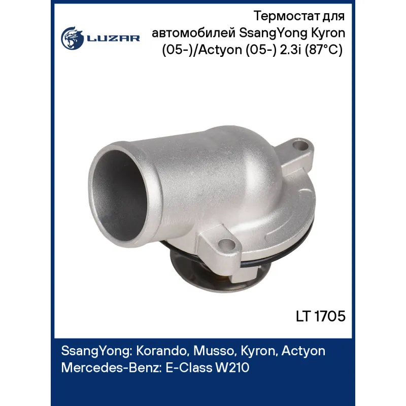 Термостат для автомобилей SsangYong Kyron (05-)/Actyon (05-) 2.3i (87°С) (c корпусом) Характеристики: Артикул: LT 1705 OEM номера: 1612033375, A1112000315, 1112000315, A1112030375, 1112030375 Количество на автомобиль: 1 Трансмиссия: MT Температура открытия, ?С: 87 Кондиционер: +/- Сопутствующий товар: Насосы водяные (помпы): LWP 1513; LWP 1720; LWP 1750; LWP 2023 Сопутствующий товар: Радиаторы охлаждения: LRc 15109; LRc 17130; LRc 17131; LRc 1750 Комплектация: уплотнительная прокладка Материал корпуса: алюминий Подходит для авто: SsangYong Korando (95-), Musso (93-), Kyron (05-), Actyon (05-), Rexton (02-) Mercedes-Benz E-Class W210 (95-), C-Class W202 (93-), CLK W208 (96-) Для проверки применяемости отправьте VIN автомобиля через вкладку "Есть вопросы о товаре?" Комплектация: термостат - 1 шт Паспорт изделия - 1 шт Уплотнительная прокладка - 1 шт Гарантия: от 1 года.