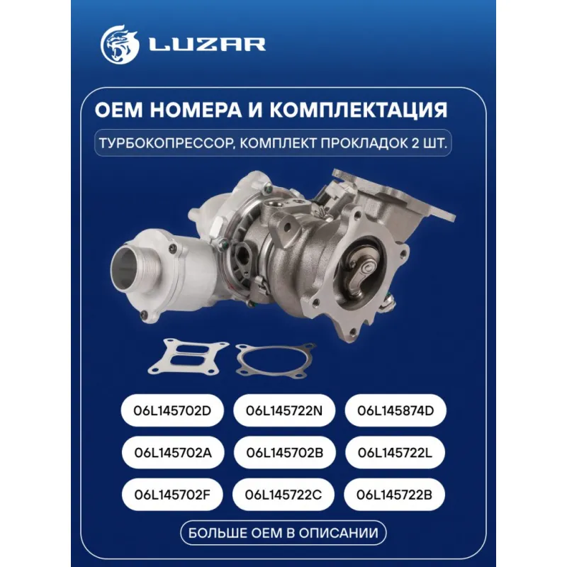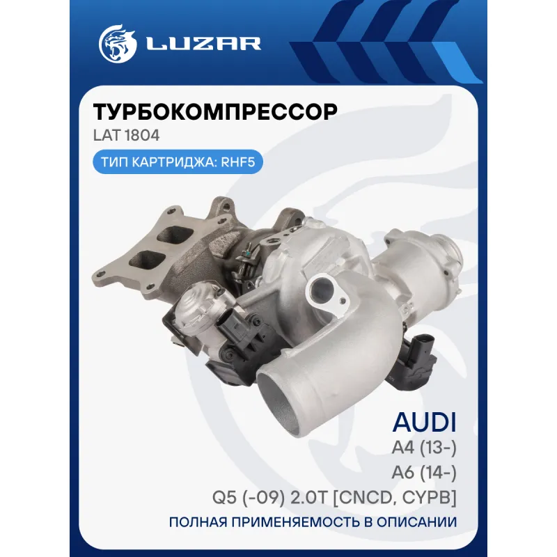 Турбокомпрессор для а/м Audi A4 (13-)/А6 (14-)/Q5 (-09) 2.0T [CNCD, CYPB] (тип RHF5) Характеристики: Артикул: LAT 1804 OEM номера: 06L145702F, 06L145722C, 06L145722B, 06L145702A, 06L145702B, 06L145722L, 06L145702D, 06L145722N, 06L145874D, 06L145702M, 06L145702P, 06L145702Q Количество на автомобиль: 1 Применяемость: CNCD, CYPA, CYPB, CYNB Тип картриджа: RHF5 Подходит для авто: Audi A4 B8 (07-), A5 (07-), A6 C7 (11-), Q5 (08-) Porsche Macan (14-) Для проверки применяемости отправьте VIN автомобиля через вкладку "Есть вопросы о товаре?" Комплектация: Турбокомпрессор Комплект прокладок - 2 шт Паспорт изделия Гарантия: от 1 года.