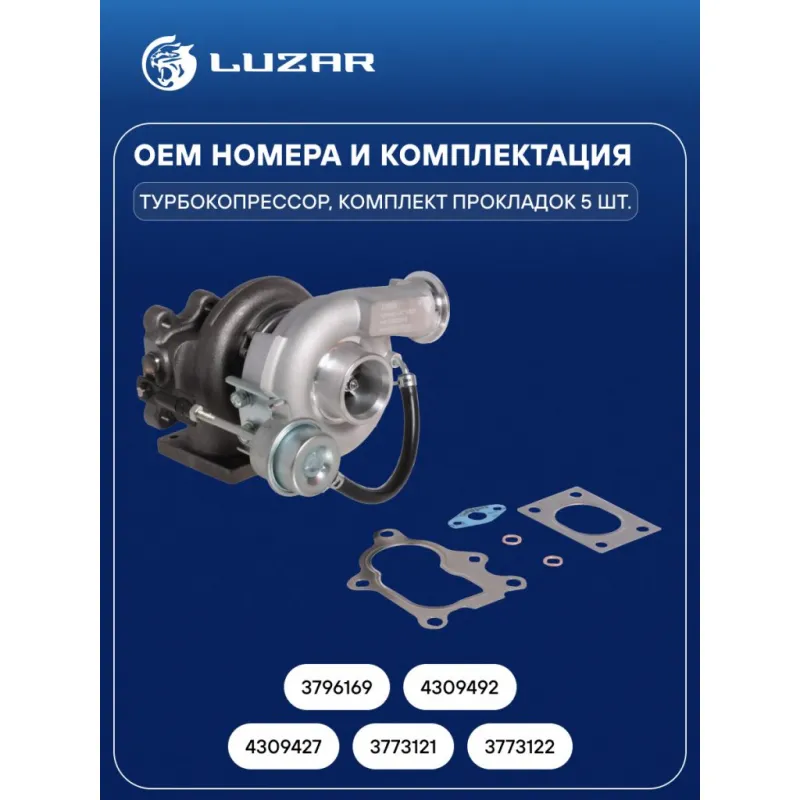 Турбокомпрессор для а/м ГАЗель-Бизнес Cummins ISF2.8 E-3 (тип HE200WG) Характеристики: Артикул: LAT 0322 OEM номера: 4309427, 3773121, 3773122, 3796169, 4309492 Количество на автомобиль: 1 Тип картриджа: HE200WG Сопутствующий товар: Радиаторы интеркулера (онв): LRIC 03028; LRIC 03029 Картридж: LAT 5003 Сопутствующий товар: Актуатор: LTC 0322 Сопутствующий товар: Набор монтажный: LTC 03221 Подходит для авто: ГАЗ Gazelle-Next (13-), A21R22, 33027, Gazelle-Business, 33025 Для проверки применяемости отправьте VIN автомобиля через вкладку "Есть вопросы о товаре?" Комплектация: Турбокомпрессор - 1 шт Комплект прокладок - 5 шт Паспорт изделия - 1 шт Гарантия: от 1 года.