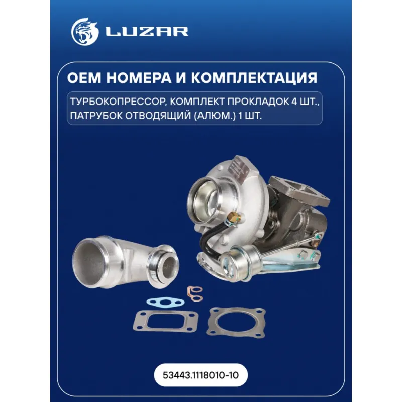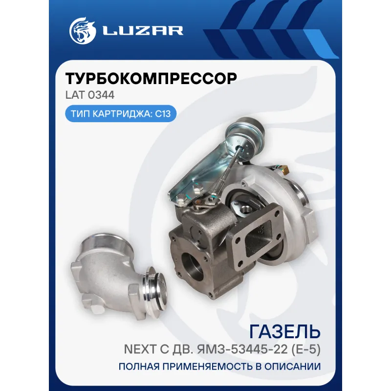 Турбокомпрессор для а/м ГАЗон Next с дв. ЯМЗ-53445-22 (E-5) (тип C13-267-01) Характеристики: Артикул: LAT 0344 OEM номера: 53443.1118010-10, 53443.1118010-11 Количество на автомобиль: 1 Комплектация: с отводящим патрубком -5340.1115283-10 Тип картриджа: С13 Применение: ЯМЗ-53445-20/23 (E-5) Сопутствующий товар: Актуатор: LTC 0344 Сопутствующий товар: Набор монтажный: LTC 03441 Подходит для авто: ГАЗ GAZon-Next (14-), GAZon-Next (14-) 10т. Для проверки применяемости отправьте VIN автомобиля через вкладку "Есть вопросы о товаре?" Комплектация: Турбокомпрессор - 1 шт Комплект прокладок - 4 шт Патрубок отводящий (алюм.) - 1 шт Паспорт изделия Гарантия: от 1 года.
